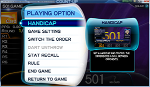 Games with handicap option available are: 01-Game/Cricket/Count-Up