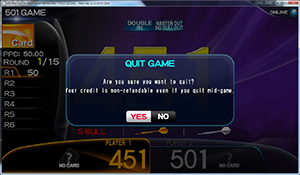 Players can use this function to cancel and reset a game without inserting additional coins if the wrong type of game was selected and only if no darts have been thrown.