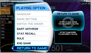 Players can use this function to return to the previous game screen once they are finished making adjustments using the 'Playing Option' function.