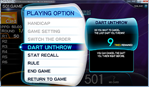 Players can use this function to cancel a previous throw in the event of an error or if the score is incorrectly recognized.