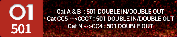 | Cat A & B | 501 DOUBLE IN/DOUBLE OUT |