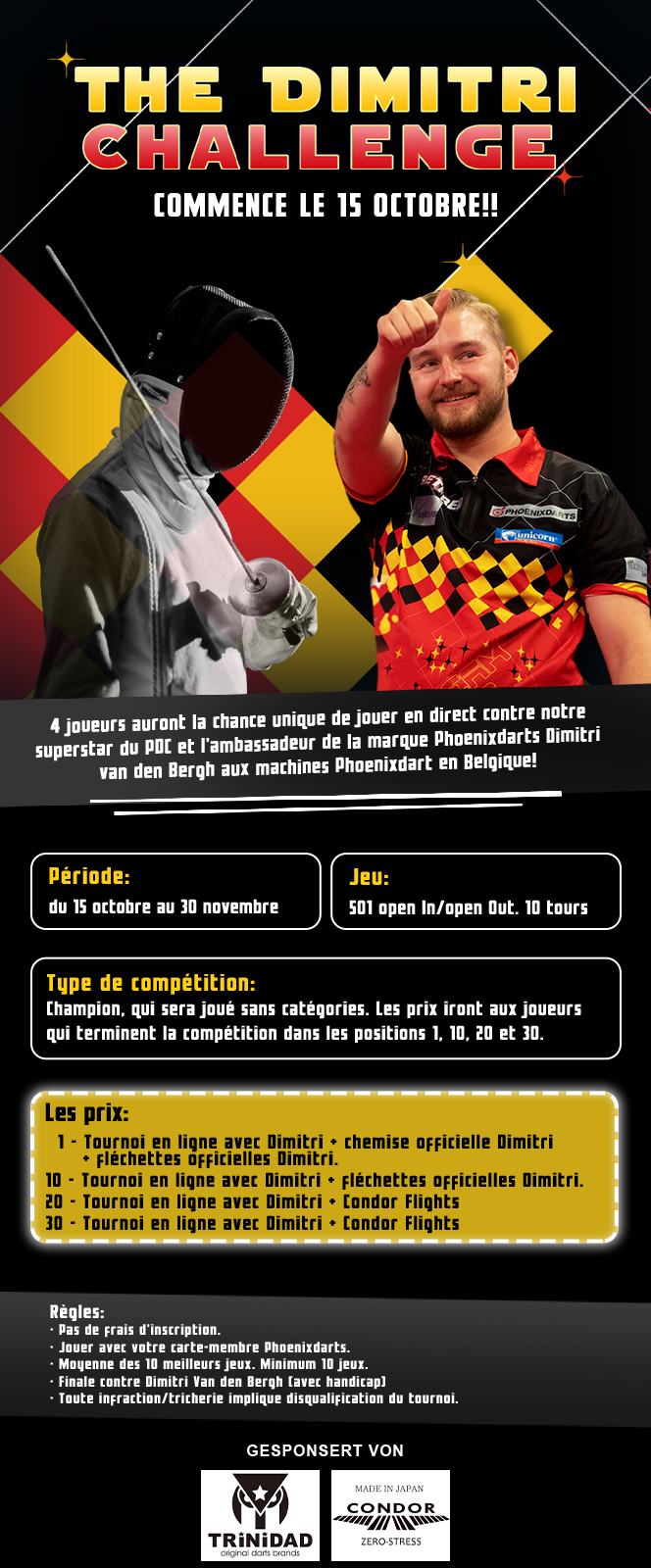- ·10 - Tournoi en ligne avec Dimitri + fléchettes officielles Dimitri.