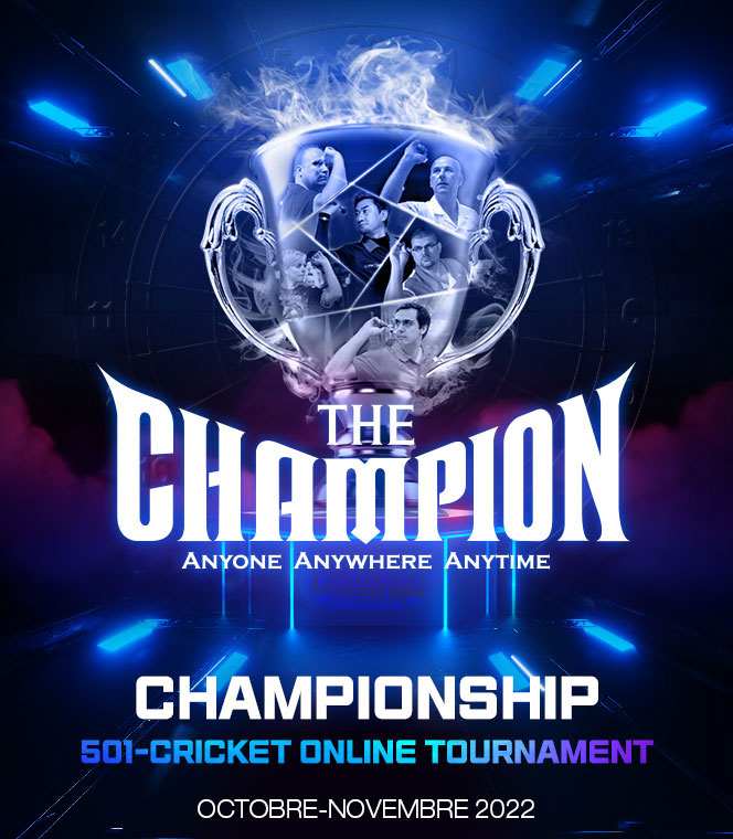 - Championship 17/10/2022 jusqu'au 30/10/2022 501 double out, 15 tours 31/10/2022 jusqu'au 13/11//2022 Standard cricket 20 tours