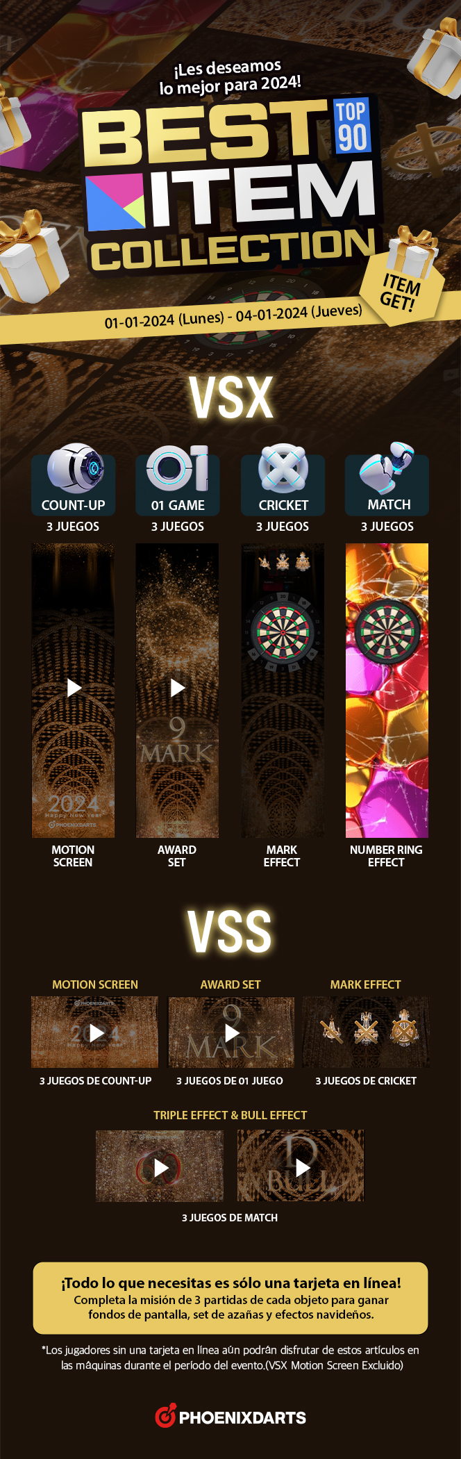 - · ¡Completa 3 juegos de COUNT-UP, 01 GAME, CRICKET y MATCH para ganar artículos!