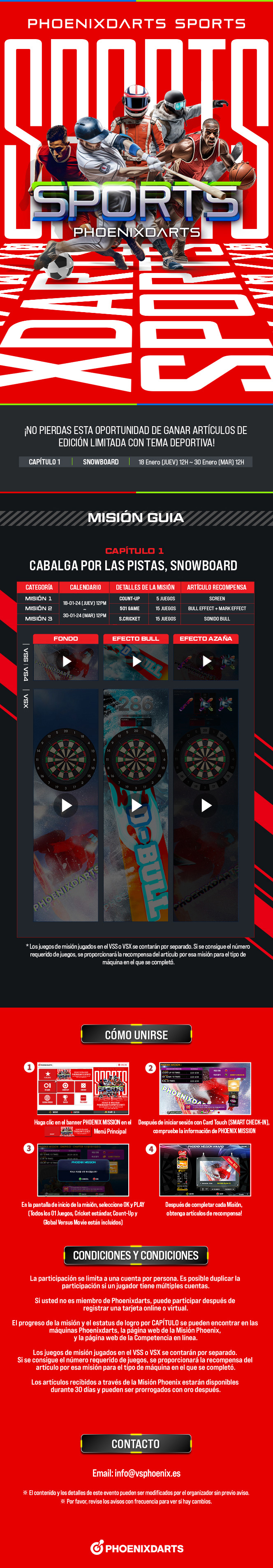 [Evento] PHOENIXDARTS SPORTS | CHAPTER 1. SNOWBOARD 2024-01-16 ¡Feliz Año Nuevo 2026! ▲ 2025-12-24 ▼ ¡Solo en VSX! TEMA 501 [Deportes de Invierno] ¡Actualización del tema! 2024-01-08 Lista