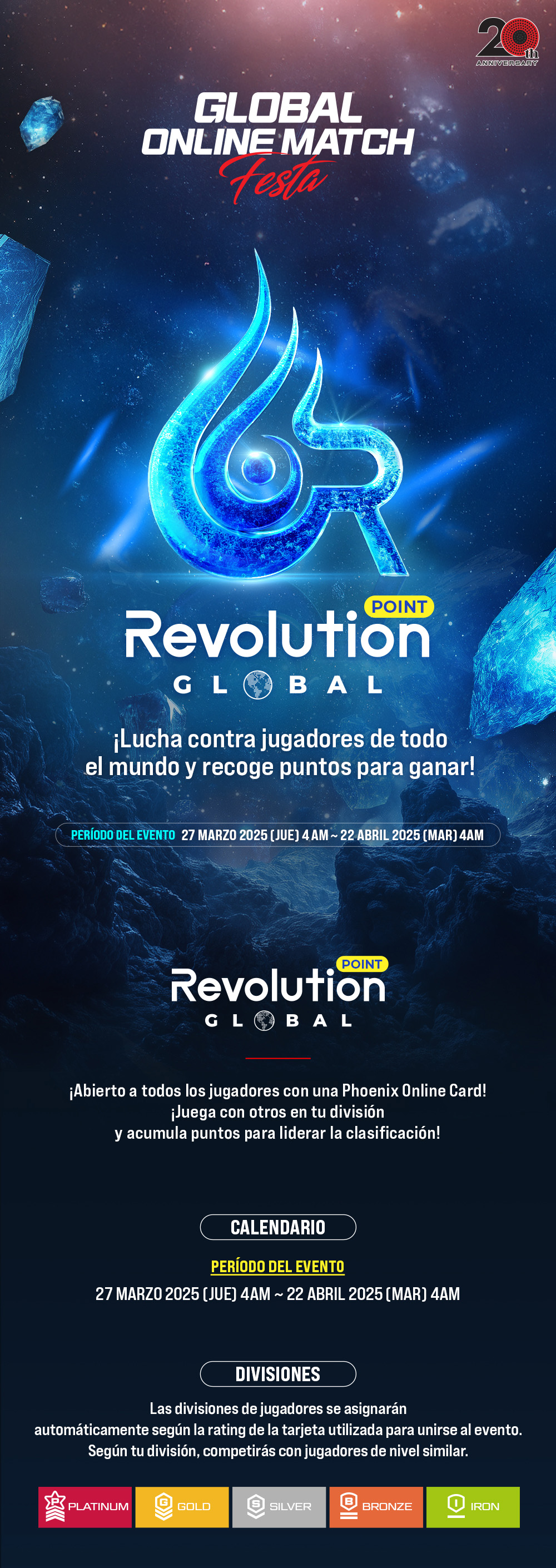 | Revolution Global | 27 marzo 2025 (JUE) 4 am ~ 22 abril 2025 (MAR) 4am | Todos los titulares de tarjetas Phoenix Online | Tiendas con máquinas VSX, VS4, VSS o VSP |