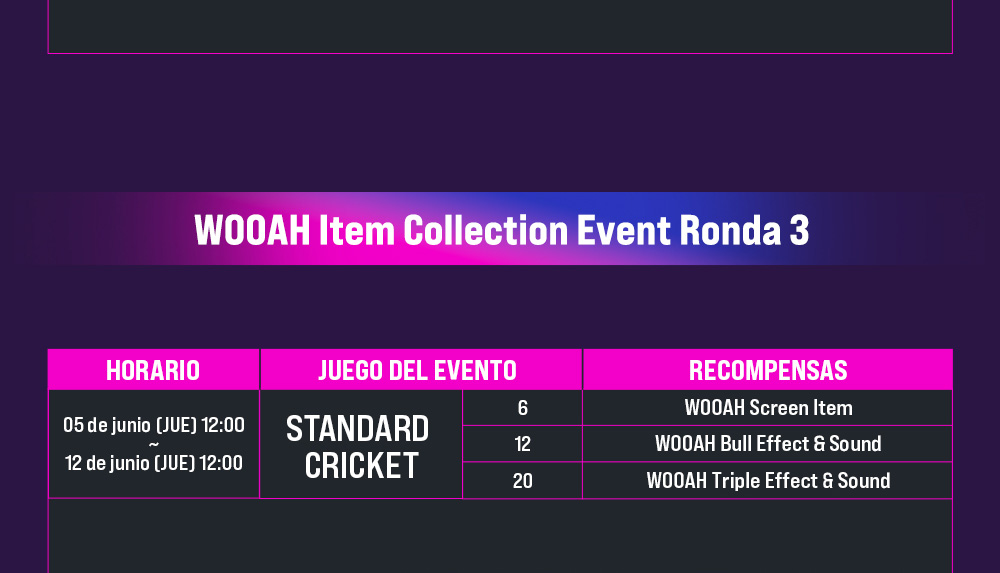 - >¡Completa el número requerido de juegos STANDARD CRICKET (4, 8, 12, etc.) y obtén tu objeto automáticamente!