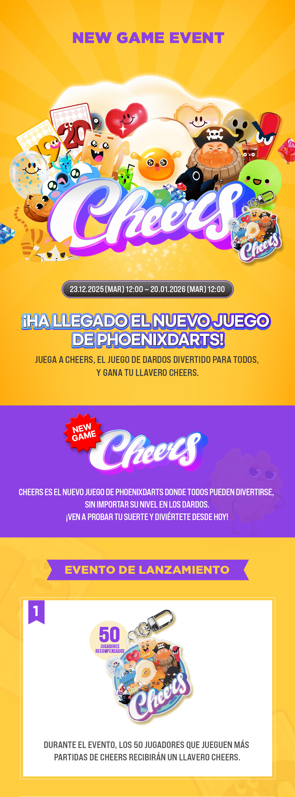 [Evento] LANZAMIENTO DEL NUEVO JUEGO Cheers 2025-12-16 ¡Feliz Año Nuevo 2026! ▲ 2025-12-24 ▼ ¡Actualización de Nuevo Artículo de diciembre! 2025-12-02 Lista