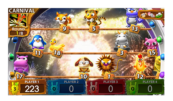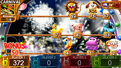 [Cómo jugar]El juego consiste en acumular puntos acertando en los números marcados sobre los personajes que aparecen en la pantalla.[Cómo ganar]Gana el jugador que acumule el mayor número de puntos.※ En caso de empate, gana el jugador que acierte sobre el mayor número de personajes. -