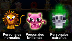 Hay 18 personajes normales, incluyendo el fuego, tres personajes brillantes y tres personajes extraños.