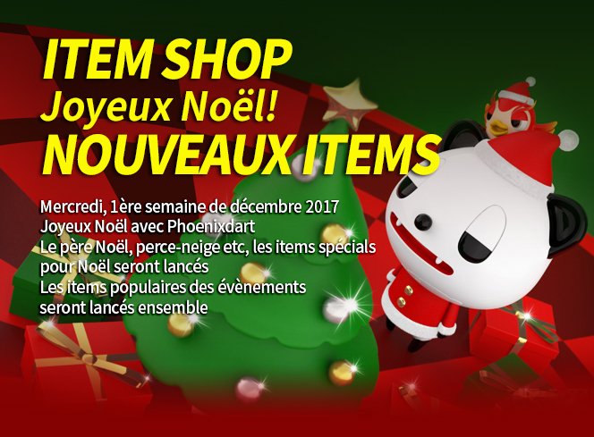 [Notifications] ITEM SHOP Christmas NEW ITEM 2017-11-16 LANCEMENT DU NOUVEAU JEU Cheers ▲ 2025-12-16 ▼ HAPPY HALLOWEEN FROM PHOENIX 2017-10-18 liste