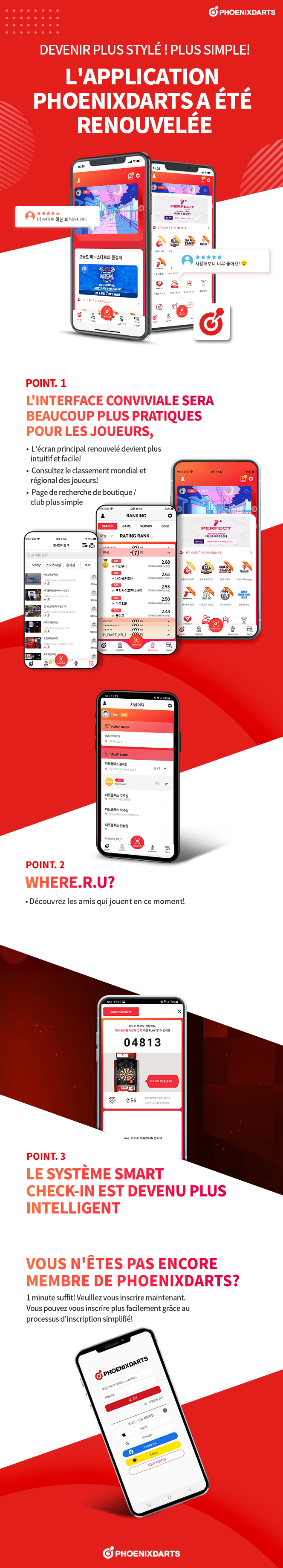 [Notifications] L'application officielle de PHOENIXDARTS est renouvelée! 2021-05-07 LANCEMENT DU NOUVEAU JEU Cheers ▲ 2025-12-16 ▼ Célébrons notre Fête du Travail! 2021-04-28 liste