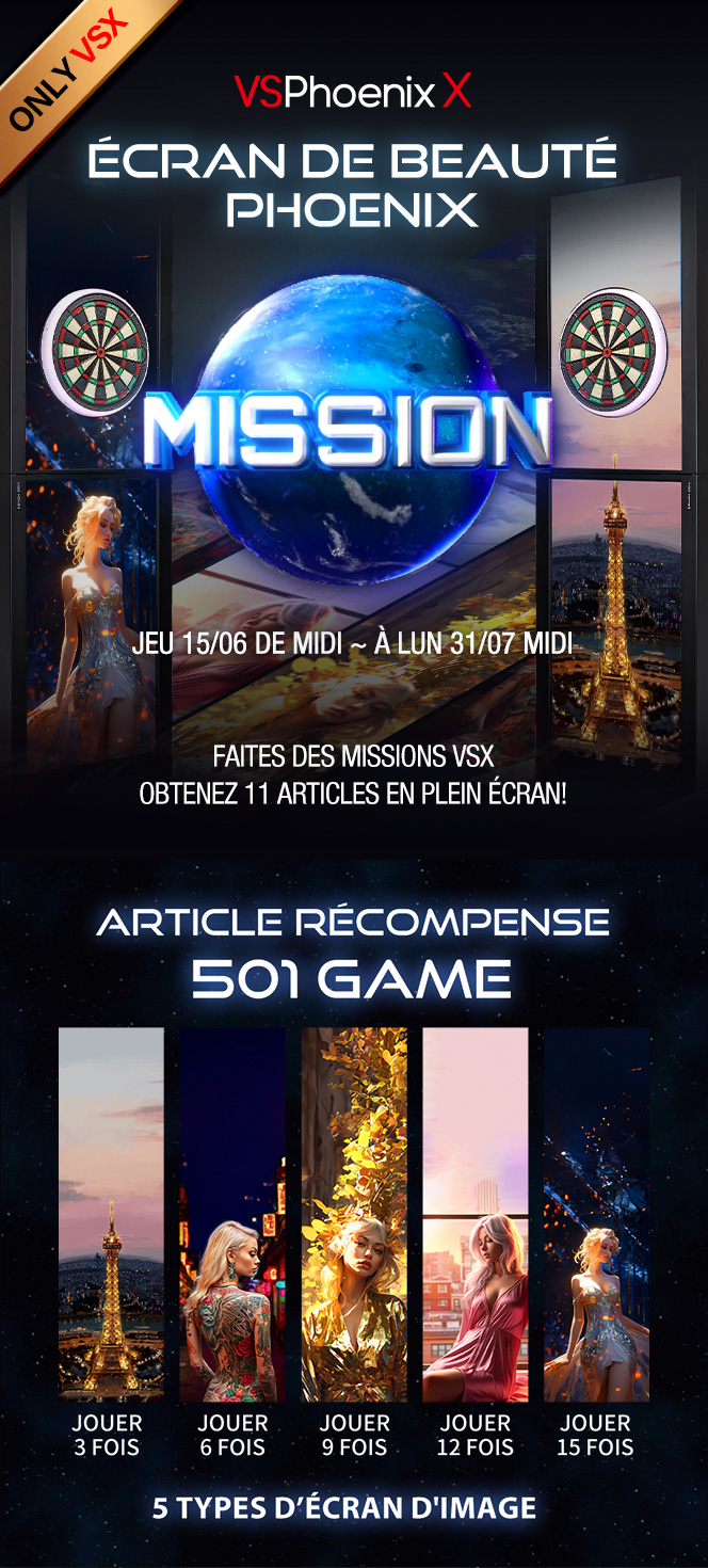 [événement] VSPhoenixX ÉCRAN DE BEAUTÉ PHOENIX MISSION 2023-06-15 LANCEMENT DU NOUVEAU JEU Cheers ▲ 2025-12-16 ▼ 2023 K-DARTS FESTIVAL INFORMATION 2023-05-31 liste
