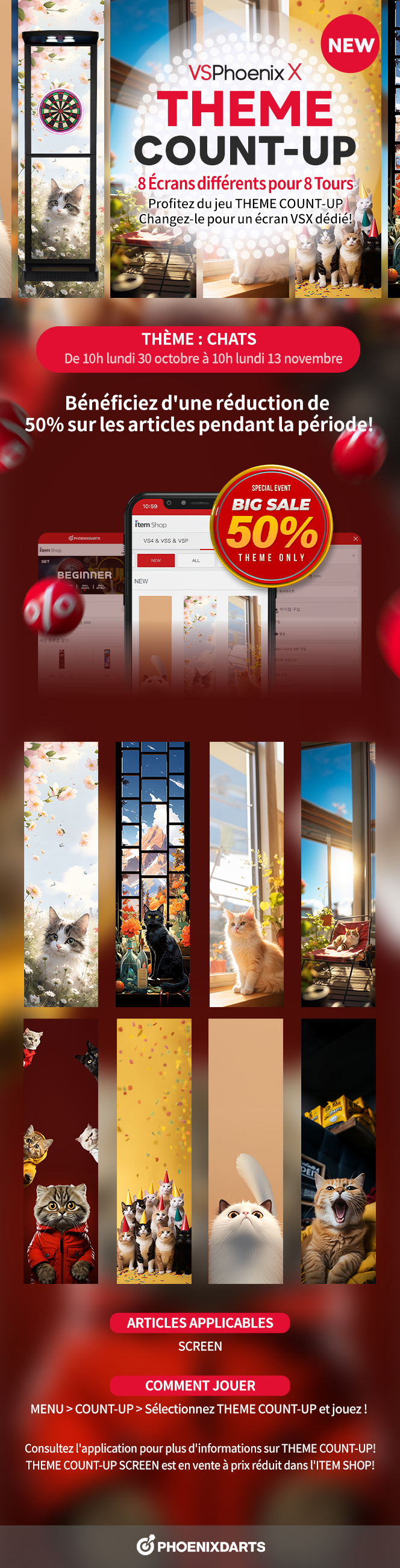 [événement] [CHATS]THEME COUNT-UP UNIQUEMENT POUR VSX 2023-10-30 LANCEMENT DU NOUVEAU JEU Cheers ▲ 2025-12-16 ▼ FÊTE D'HALLOWEEN À PHOENIXDARTS 2023-10-20 liste