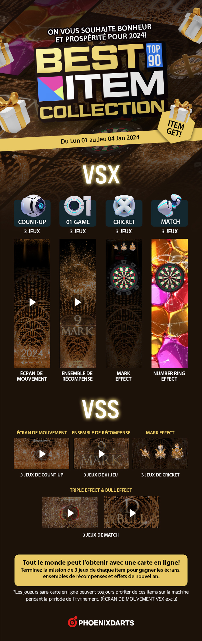 - · Lorsque le nombre requis de jeux est atteint, accédez à la page d'accueil ou à l'application mobile de Phoenixdarts et connectez-vous → Accédez à ITEM SHOP → Cliquez sur MON ARTICLE