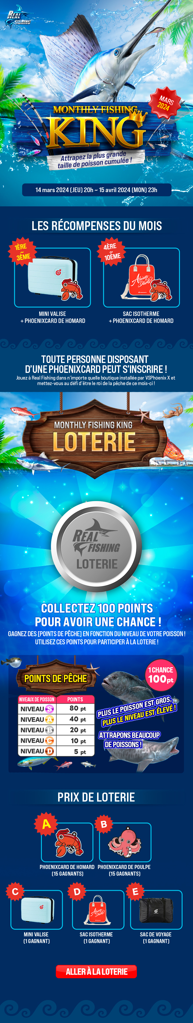 - >Tous les joueurs qui jouent à Real Fishing pendant la période de l’événement