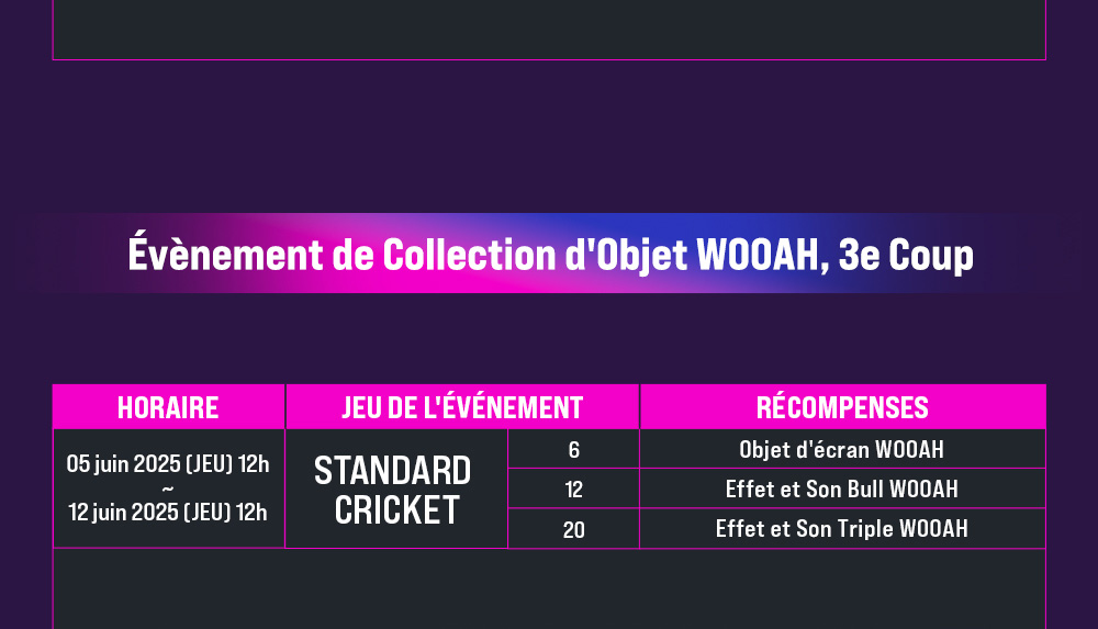 - *Les jeux joués dans le Global Online Match (GOM) ne sont pas inclus dans cet événement.