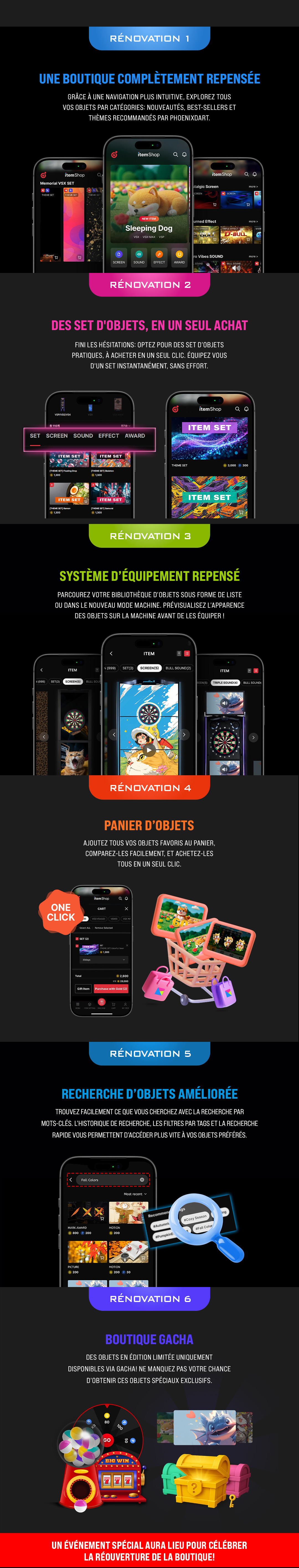 [événement] Réouverture de l'ITEM SHOP Phoenixdart ! 2025-10-30 LANCEMENT DU NOUVEAU JEU Cheers ▲ 2025-12-16 ▼ ÉVÉNEMENT SPÉCIAL HALLOWEEN 2025-10-16 liste