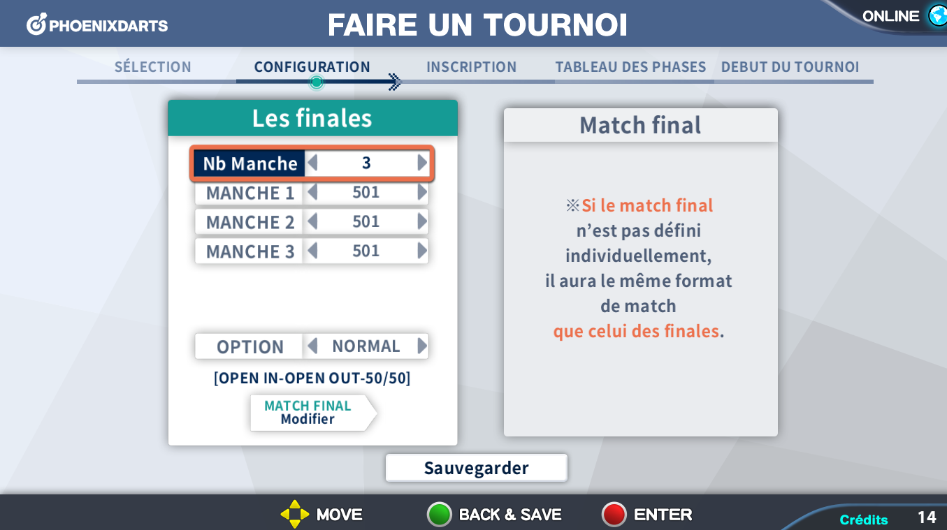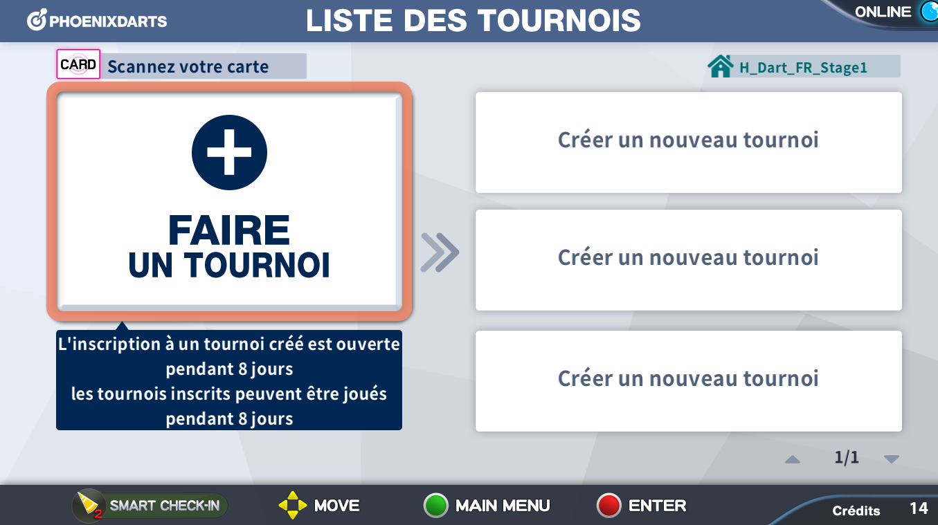 ● Uniquement un tournoi peut être crée par carte Online; et s'il n'y a pas de match sous 24heures, le tournoi sera supprimer automatiquement