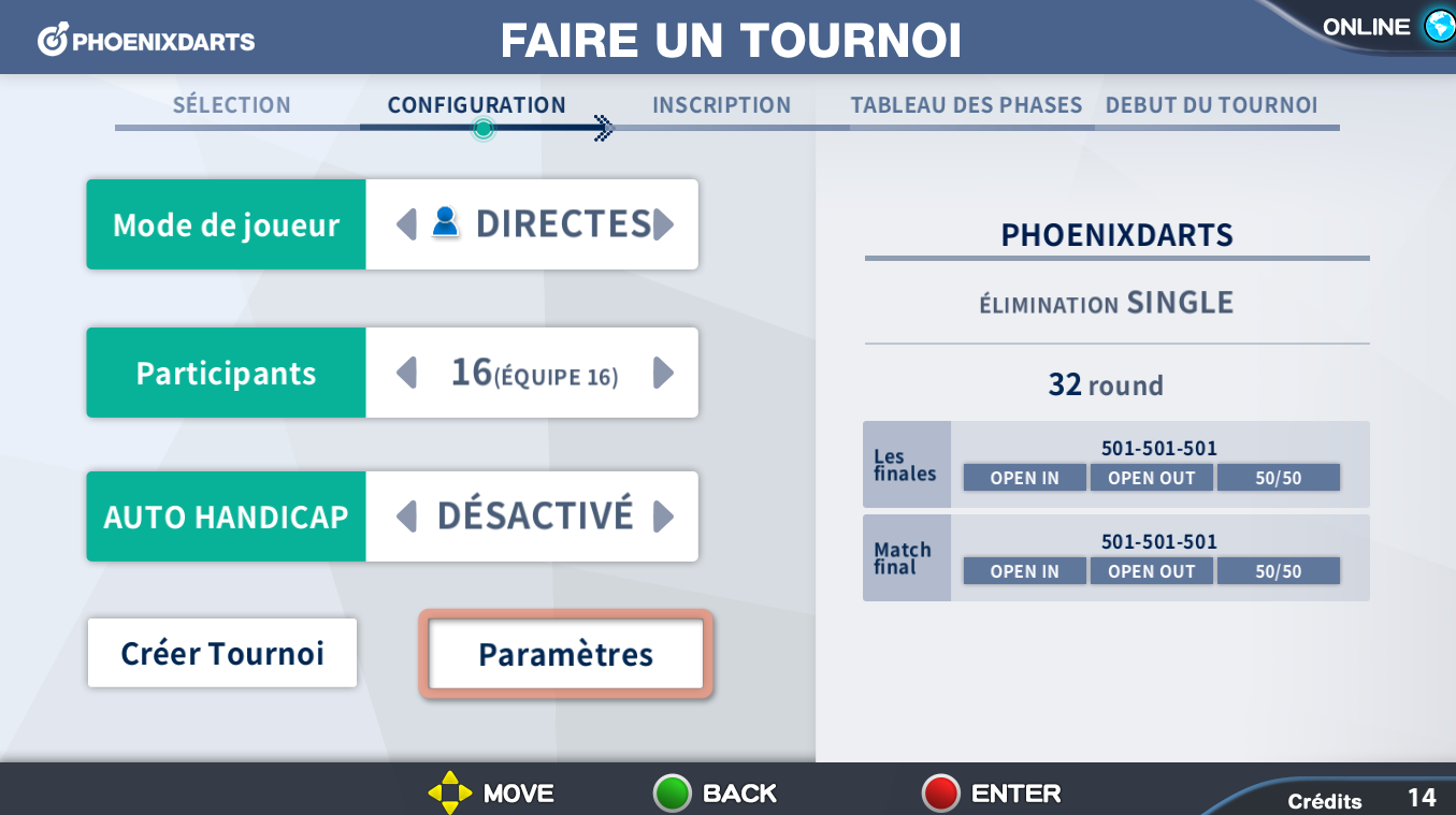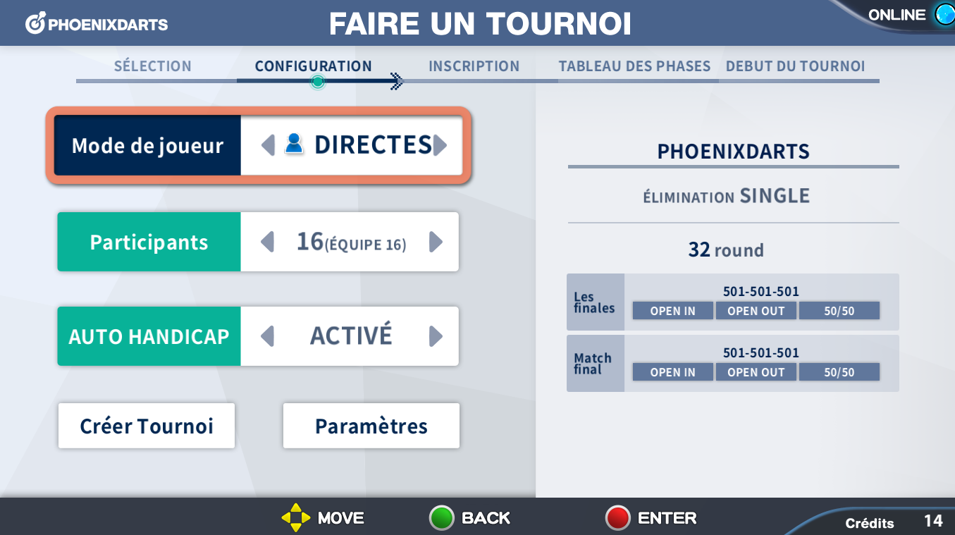 ※ Possible de participer au tournoi sans l'identifiant de Phoenixdart, mais impossible d'appliquer l'handicapSTEP 5