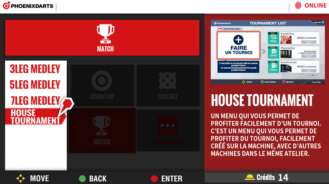Sélectionner MATCHE > HOUSE TOURNAMENTSTEP 2