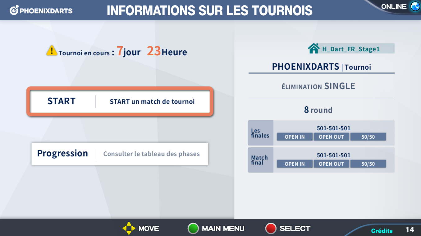 Possible de voir les informations sur le type du tournoi, les détails du paramètre et le tableau des phases.STEP 4