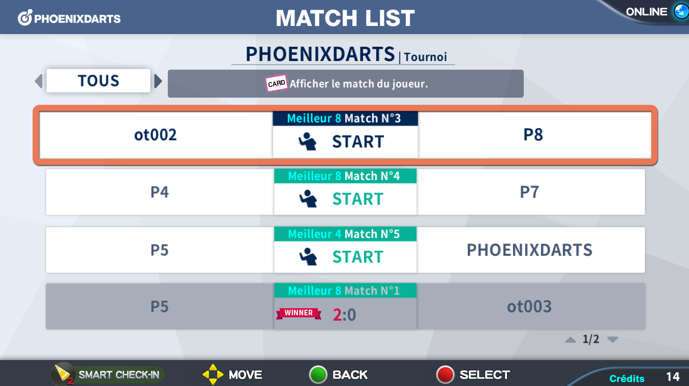 ※ Lors de première participation au tournoi, besoin de vérification par le joueur qui a créé le tournoi ou par le participant en scannant la carte ou procédant au Smart Check-InSTEP 3