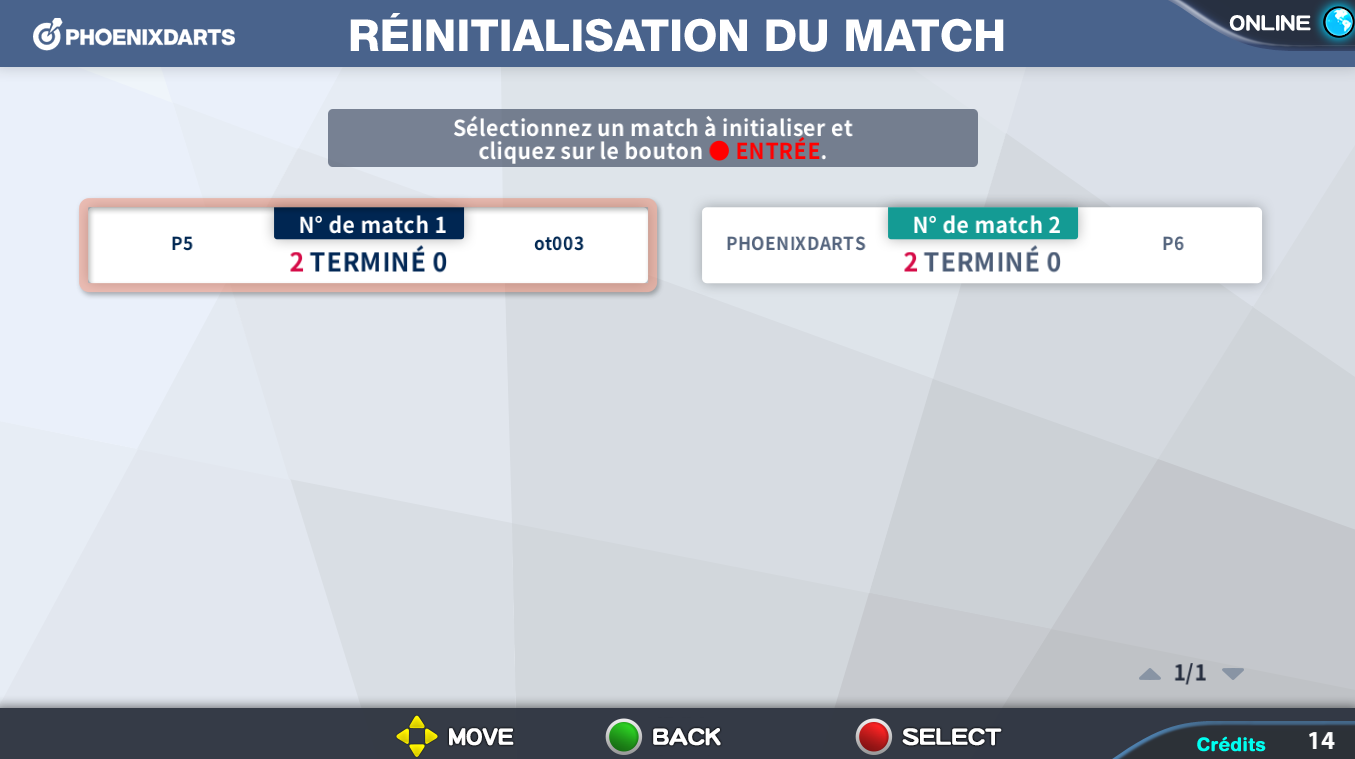 Sélectionner le match à réinitialiser et cliquer sur le bouton