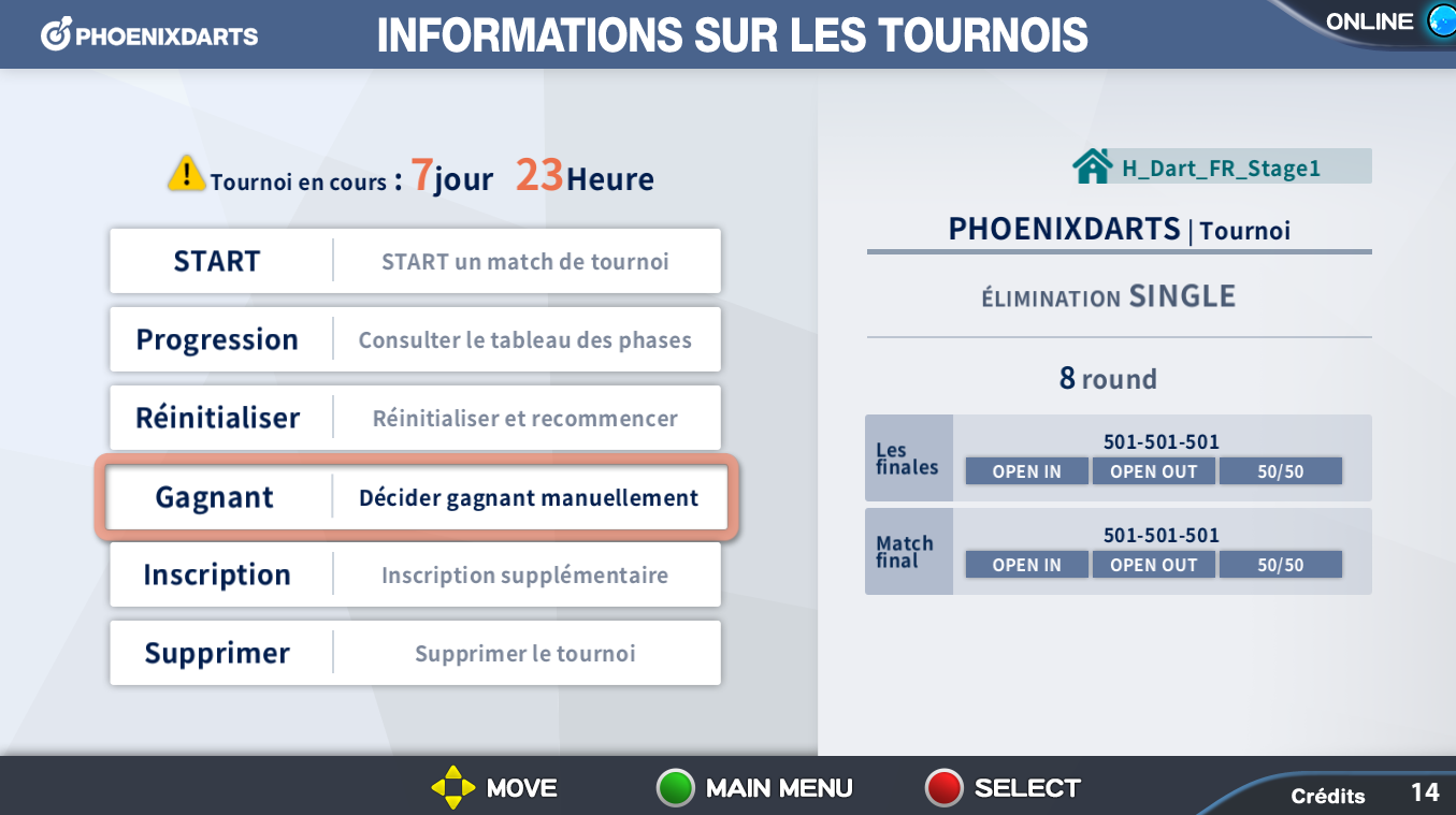 Sélectionner [Réinitialisation du match] dans l'information du tournoi