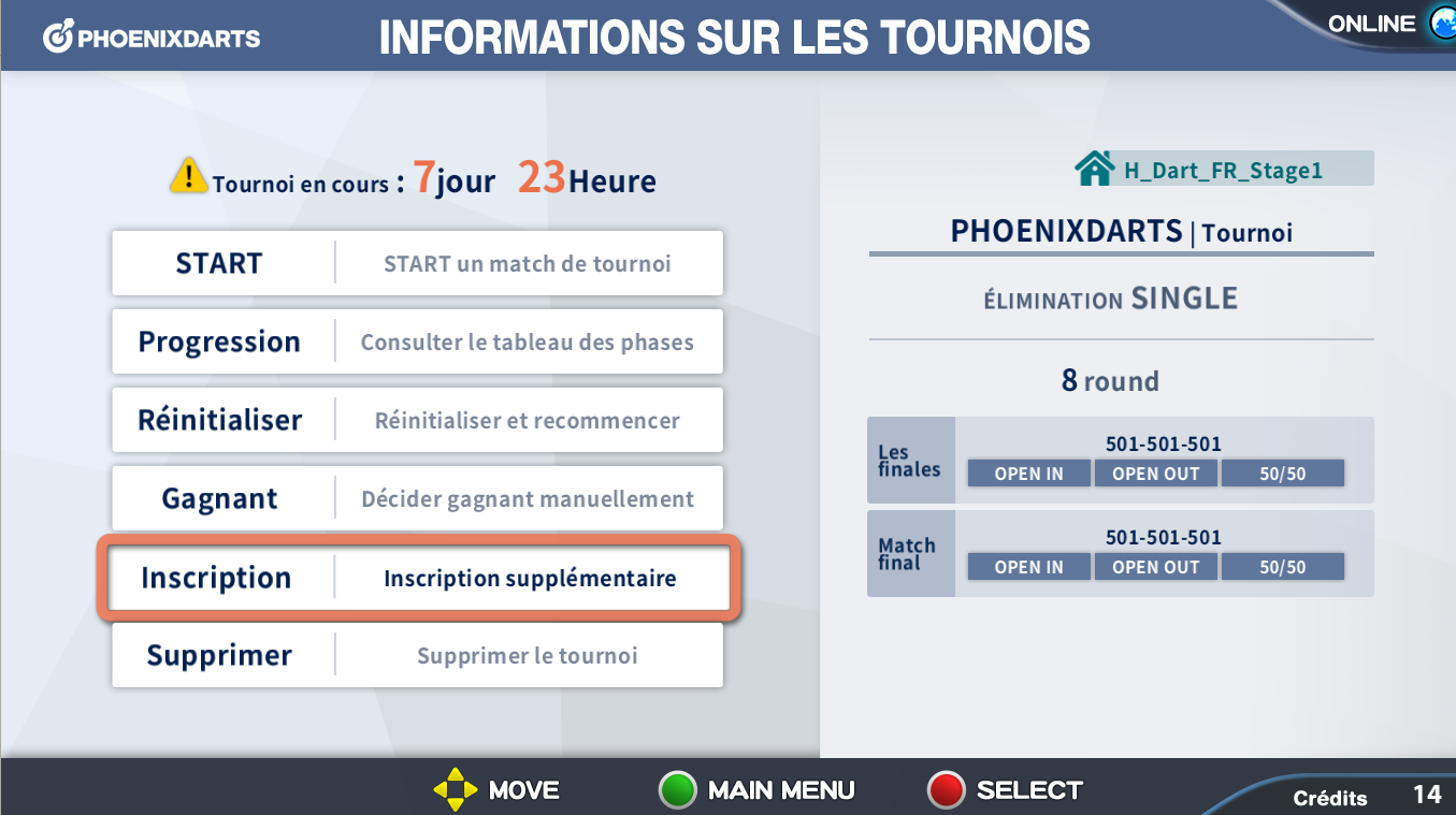 Sélectionner [Ajouter Inscription] dans l'information du tournoi