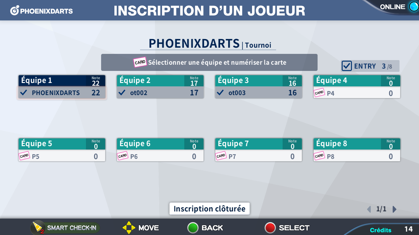 Sélectionner l'équip à s'inscrire, et scanner la carte ou procéder au Smart Check-In