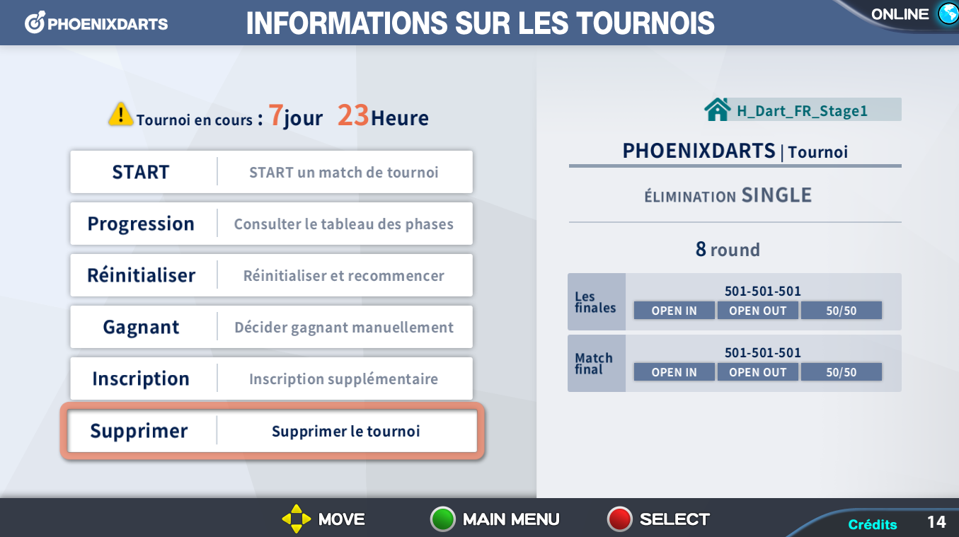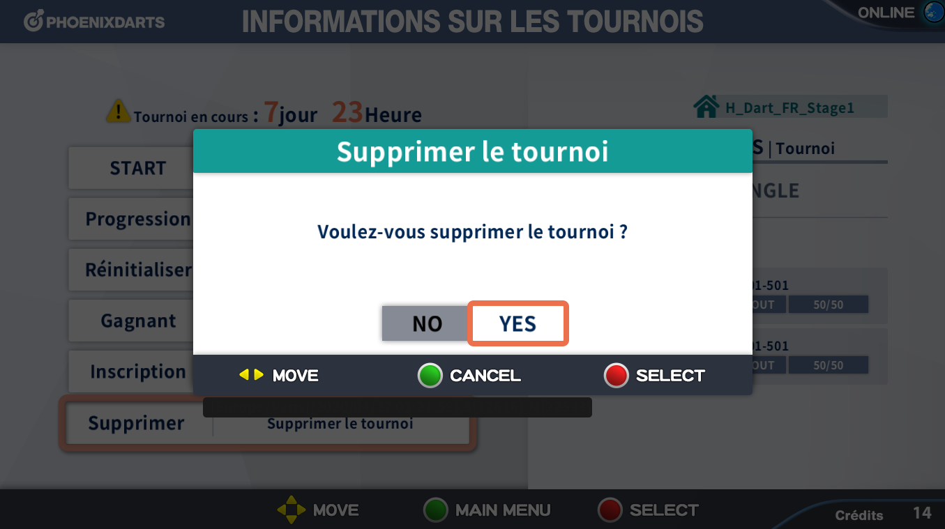 Sélectionner Supprimer Tournoi dans l'information de tournoi