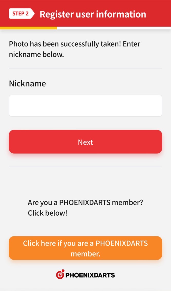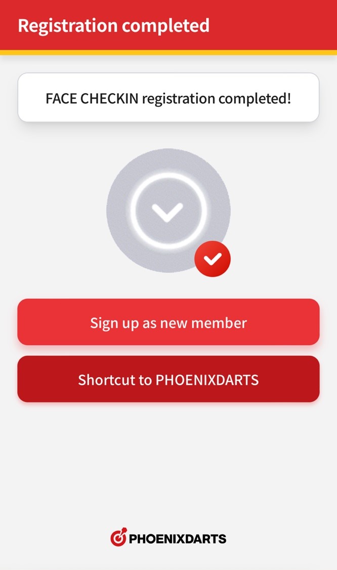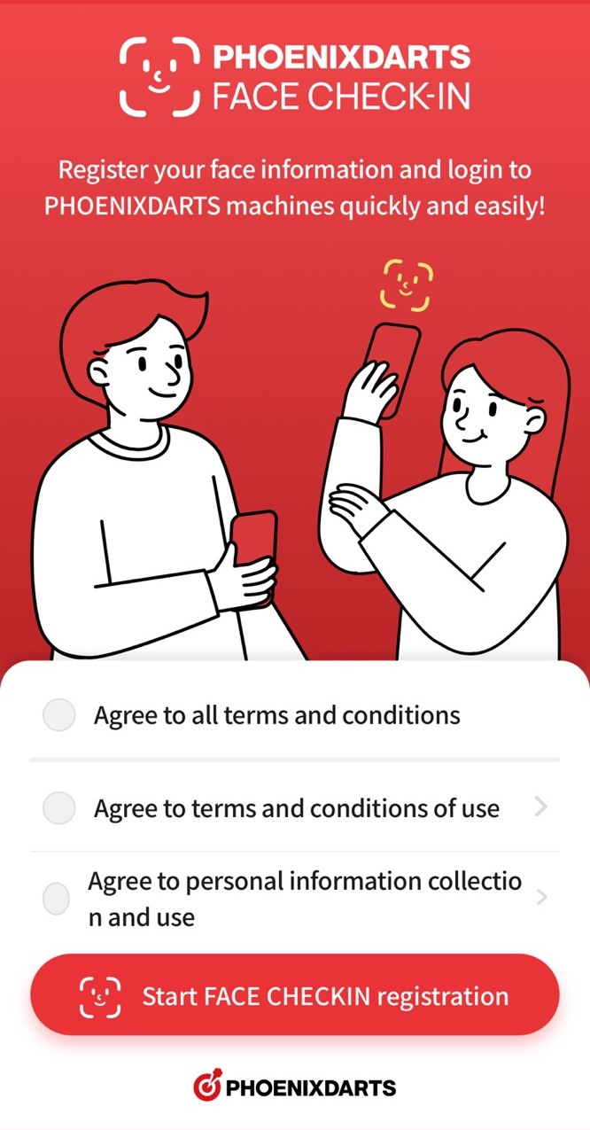 Il s'agit de la méthode d'enregistrement sur FACE CHECK-IN pour les non-membres et ceux qui jouent à la machine Phoenixdarts pour la première fois.