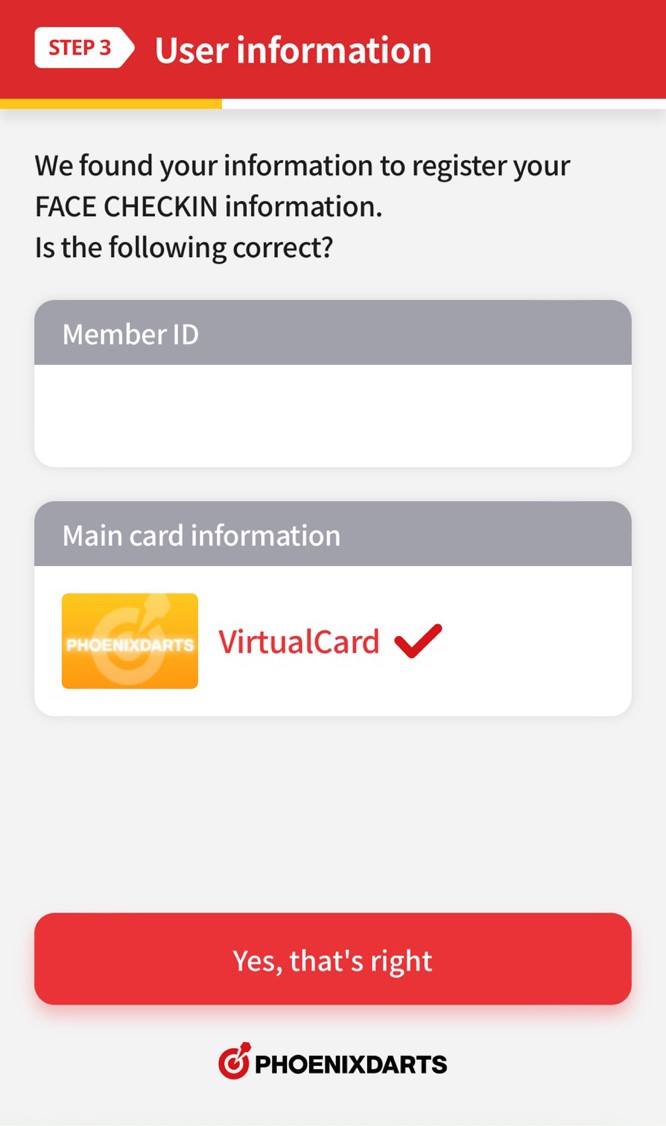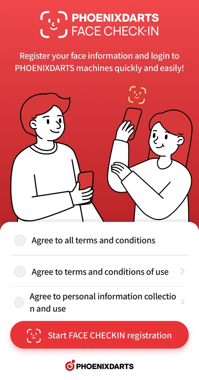 Connectez-vous simplement avec FACE CHECK-IN sur la machine Phoenixdarts.