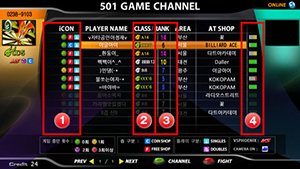 1. L'état des joueurs est indiqué par des icônes・Caméra Accessibilité・VSPHOENIX・Conduite des joueurs・Data Store・Style de jeu(simple / double)2.La catégorie de joueur3.Note contre joueur4.L'état de connexion du lecteur -