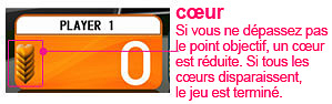 Si vous vous trompez , les points n'est pas ajouté et un cœur est réduiteConditons de victoireLe joueur avec le score total le plus élevé à la fin du jeu est le vainqueur.