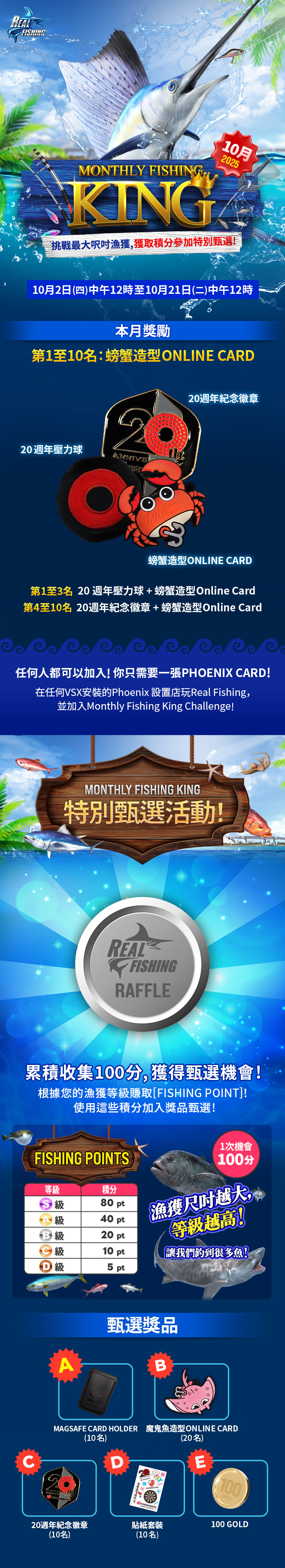 - 機台: 目前排名可以在Fishing King活動短片中查看
