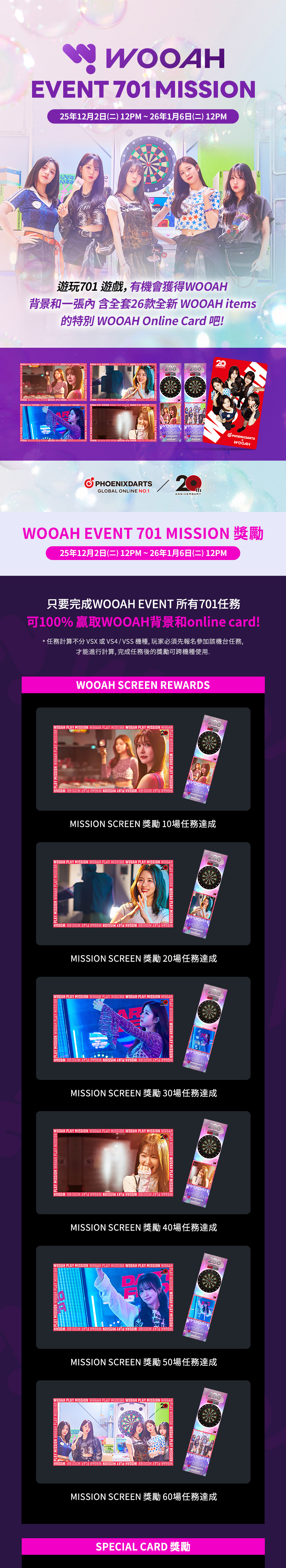 [이벤트] WOOAH EVENT 701 MISSION 2025-11-12 派對聚會 Cheers Party Game活動 ▲ 2025-12-16 ▼ 11月全新ITEM更新! 2025-11-11 목록