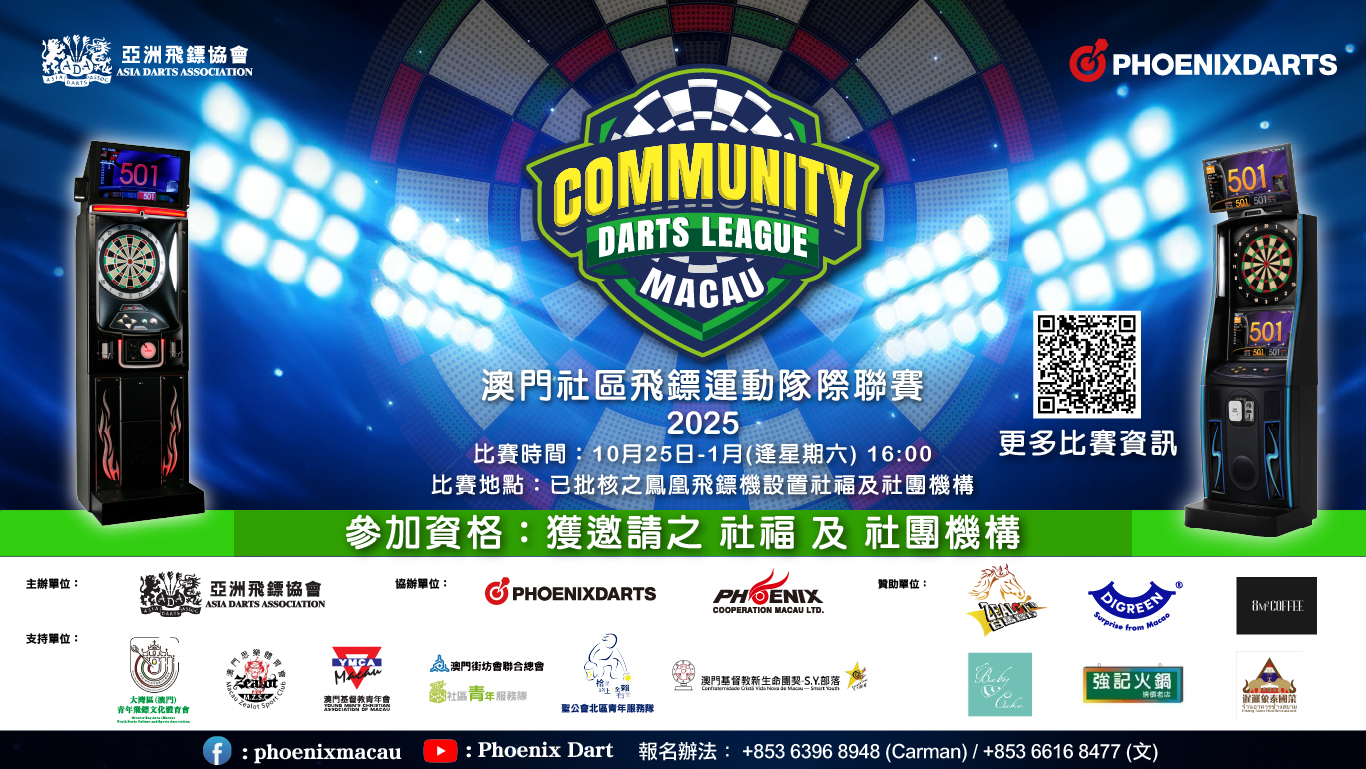 支持單位:大灣區(澳門)青年飛鏢文化體育會.澳門思樂體育會.澳門基督教青年會.澳門街坊會聯合總會社區青年服務隊.聖公會北區青年服務隊.澳門基督教新生命團契-SY部落