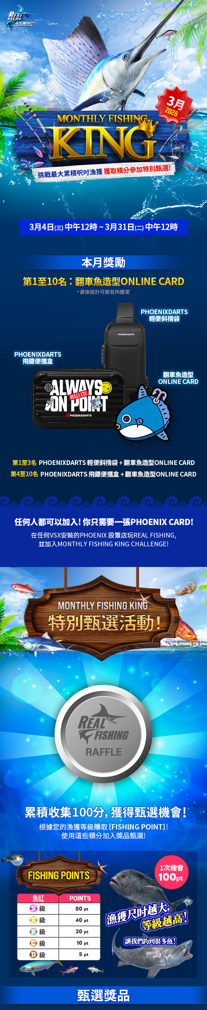 • 網頁: Phoenixdarts APP → 點擊Real Fishing Icon → 甄選活動