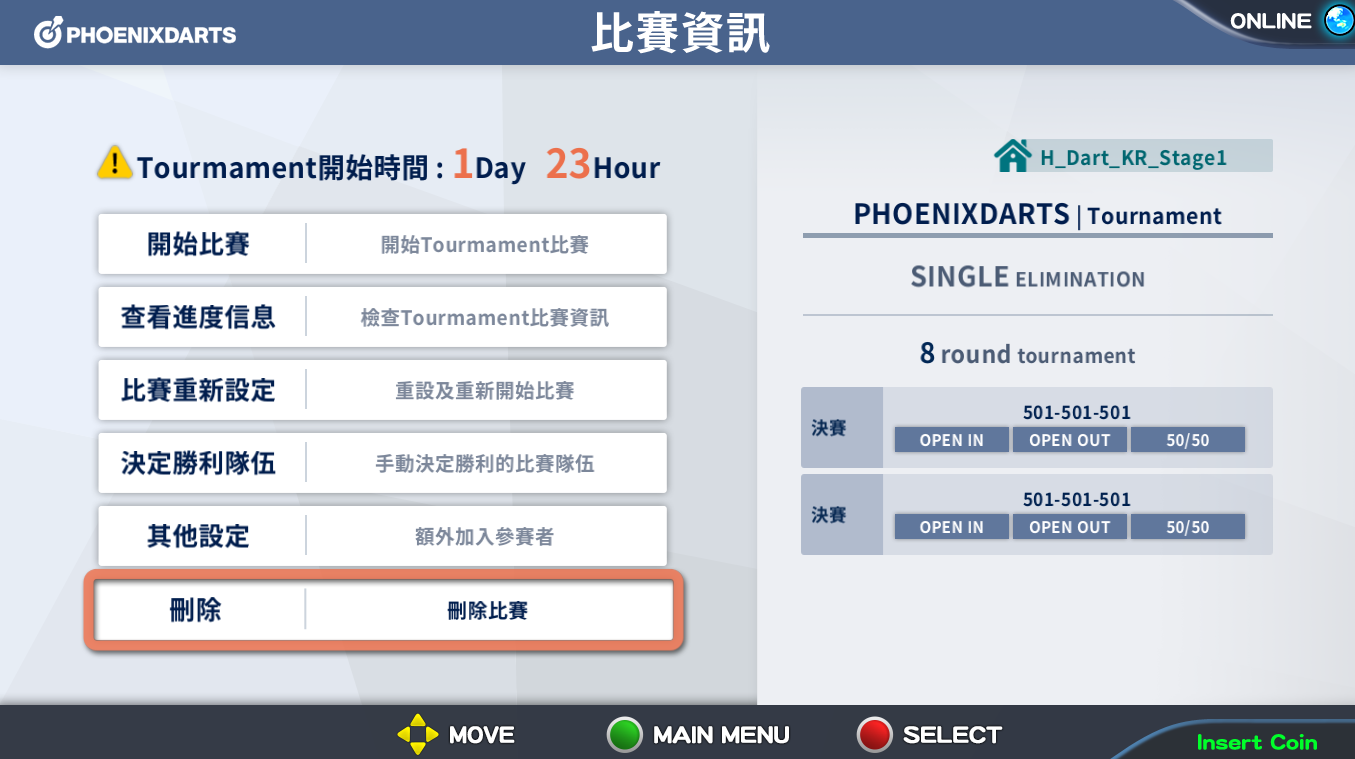 選擇[Delete Tournament]在tournament資訊STEP 2