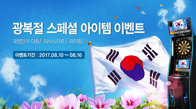 [이벤트] 광복절 스페셜 아이템 이벤트 2017-08-07 2025년 10월 다트플렉스 뉴비스 토너먼트 ▲ 2025-09-30 ▼ 2017 하반기 동호회 이벤트! 2017-08-03 목록