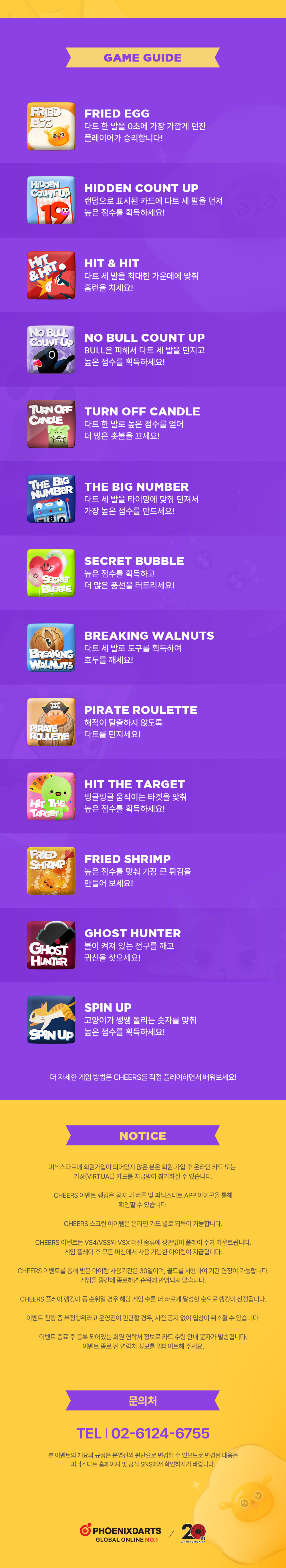 [이벤트] NEW GAME Cheers 런칭 EVENT 2025-12-16 피닉스다트 대회 전용 APP, P.TOS 사용 방법 ▲ 2025-12-12 ▼ 2025 피닉스 오피셜 리그 본선 대진표 및 본선~결승 개요 2025-12-02 목록