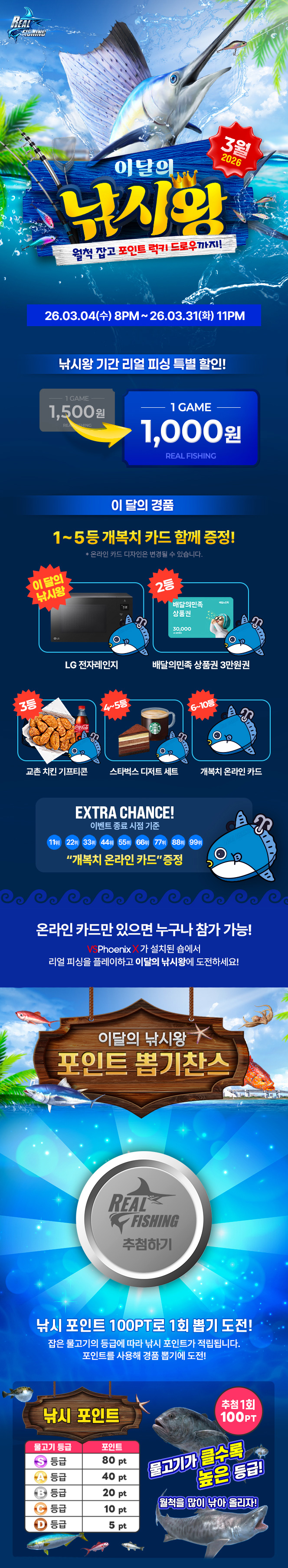 • WEB : 피닉스다트 APP → REAL FISHING 앱 아이콘 클릭 → 포인트 찬스