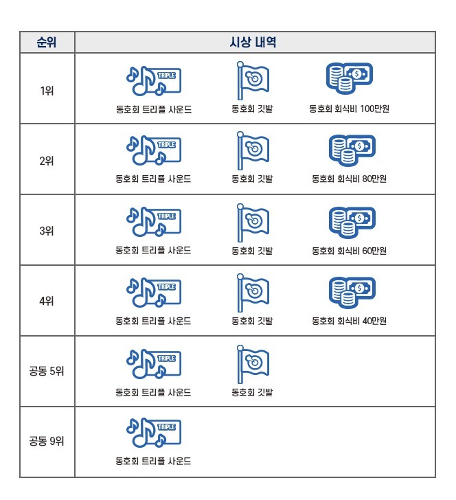 동호회 대항전 리워드