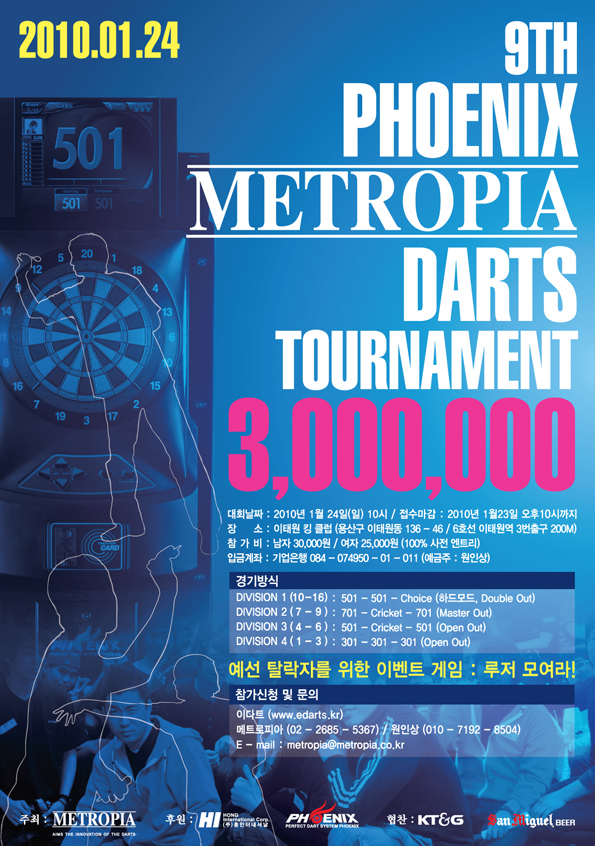 제9회 피닉스 메트로피아 다트 토너먼트 수상자 명단 보기▶