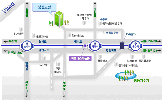 지하철 1호선 역곡역 하차(학교까지 도보 10분)