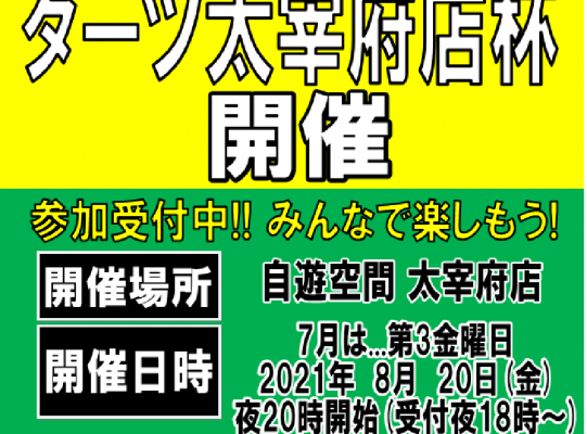 8/20 20時よりハウストーナメントを開催します。(受付18時より)