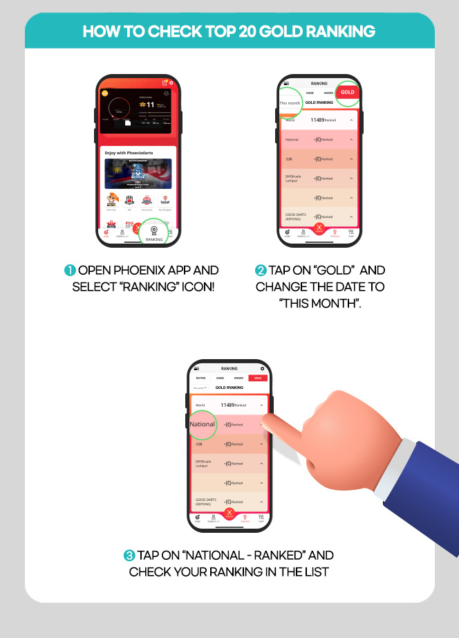 RANKING WILL BE POSTED ON “PHOENIXDARTS MALAYSIA“ FACEBOOK PAGE ON EVERY TUESDAY & FRIDAY