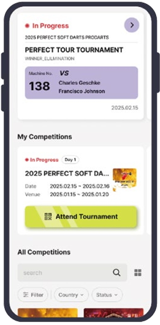 • The coin toss function of PHOENIXDARTS Machine will be used for deciding who throws the cork first.